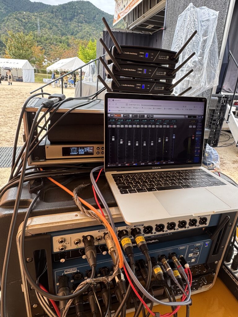 このどっさり音響機材を「電気自動車」からの電力で稼働させてます